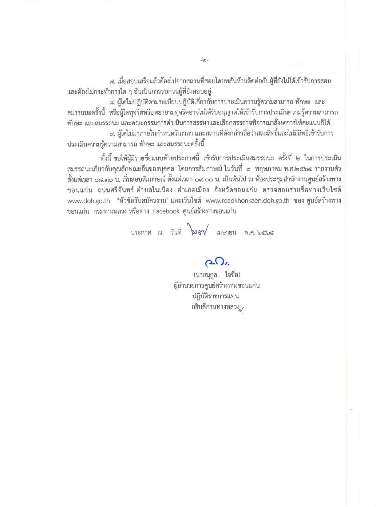 เรื่อง รายชื่อผู้มีสิทธิเข้ารับการประเมินสมรรถนะ กำหนดวัน เวลา สถานที่ ในการประเมินสมรรถนะ ครั้งที่ ๑ และ มีสิทธิเข้ารับการประเมินความรู้ความสามารถ ทักษะ สมรรถนะ ครั้งที่ ๒ ในการดำเนินการสรรหาและเลือกสรรเป็นพนักงานราชการทั่วไป ตำแหน่ง พนักงานขับและควบคุมเครื่องจักร สังกัด ศูนย์สร้างทางขอนแก่น