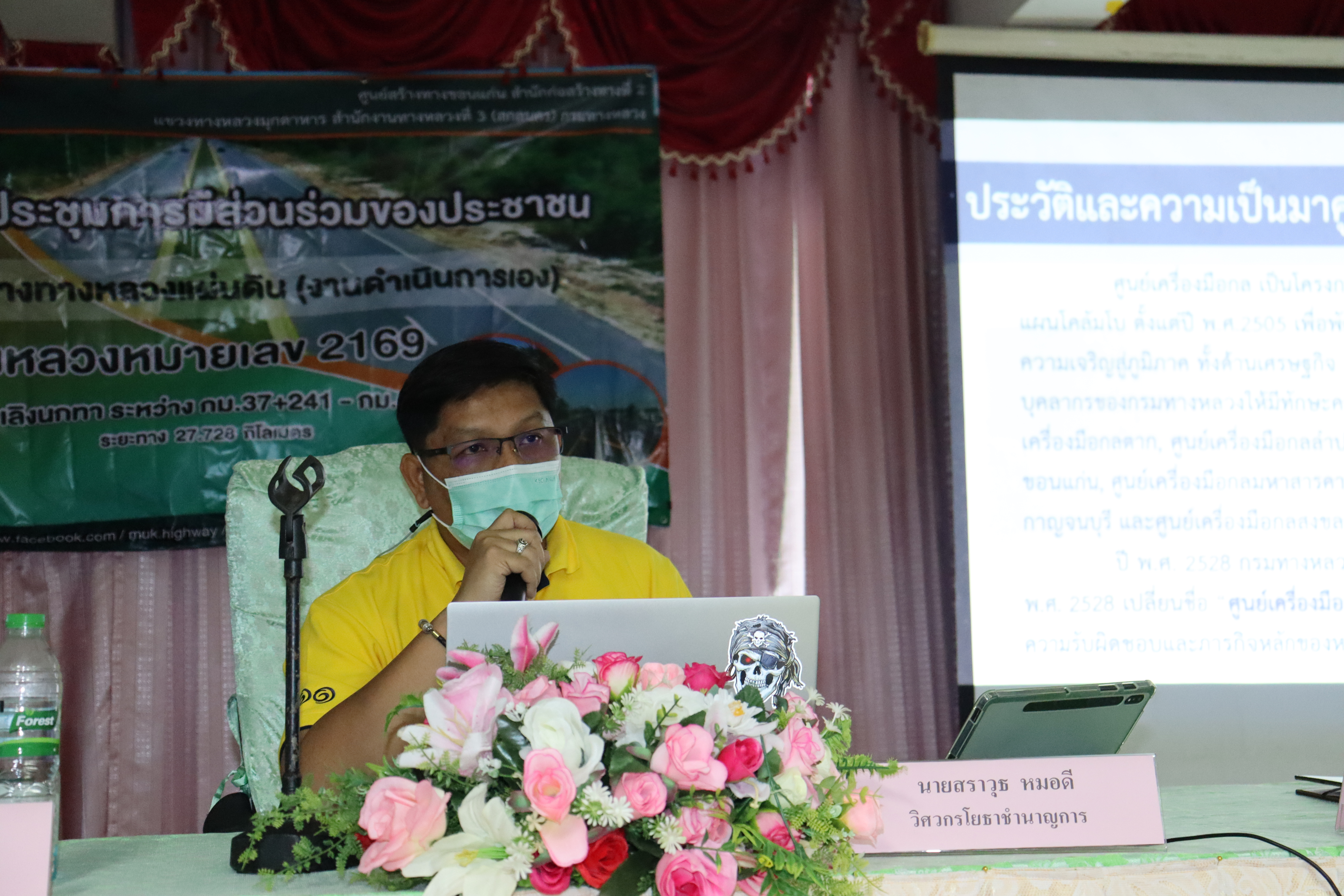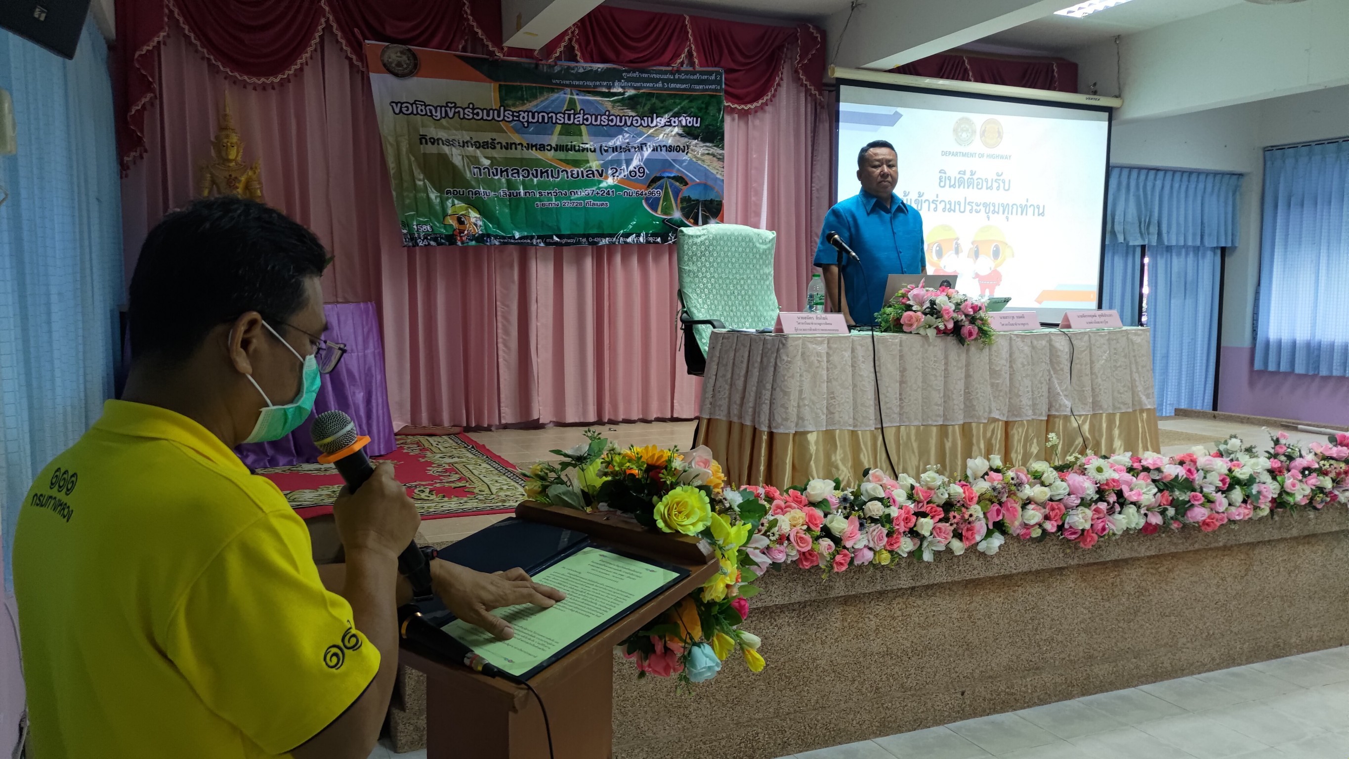 นย์สร้างทางขอนแก่น สำนักก่อสร้างทางที่ 2 ร่วมกับแขวงทางหลวงมุกดาหาร โดย นายเกรียงไกร ศรีสุราช รองผู้อำนวยการฝ่ายปฏิบัติการ และนายประสันตา สุพร รองผู้อำนวยการฝ่ายวิศวกรรม แทนผู้อำนวยการแขวงทางหลวงมุกดหารพร้อมด้วยคณะทำงานจากศูนย์สร้างทางขอนแก่นฯ นายสมัคร ต้นโลห์ วิศวกรโยธาชำนาญการพิเศษ ผู้อำนวยการฝ่ายสำรวจและออกแบบ นายจักรกฤษณ์ สุทธิประภา นายช่างโยธาอาวุโส นายสราวุธ หมอดี วิศวกรโยธาชำนาญการ และเจ้าหน้าที่ที่เกี่ยวข้อง จัดกิจกรรมประชุมการมีส่วนร่วมรับฟังความคิดเห็นของประชาชน โครงการกิจกรรมก่อสร้างทางหลวงแผ่นดิน ทางหลวงหมายเลข 2169 ตอน กุดชุม - เลิงนกทา ระหว่าง กม.37+241.000 กม.64+969.000 ระยะทาง 27.728 กิโลเมตร เพื่อให้ข้อมูลรายละเอียดรูปแบบการก่อสร้าง พร้อมรับฟังข้อคิดเห็นข้อเสนอแนะที่เป็นประโยชน์ต่อโครงการฯ จากหัวหน้าหน่วยงาน ผู้แทนหน่วยงาน ผู้นำชุมชน และประชาชนผู้มีส่วนได้ส่วนเสียต่อโครงการฯ เพื่อนำไปประกอบการพิจารณาและพัฒนาโครงการฯ ให้มีความเหมาะสมกับสภาพบริบทชุมชนต่อไป โดยมี นายประเวช แสนทวีสุข นายอำเภอไทยเจริญ เป็นประธานในโครงการประชุมการมีส่วนร่วมรับฟังความเห็นของประชาชน